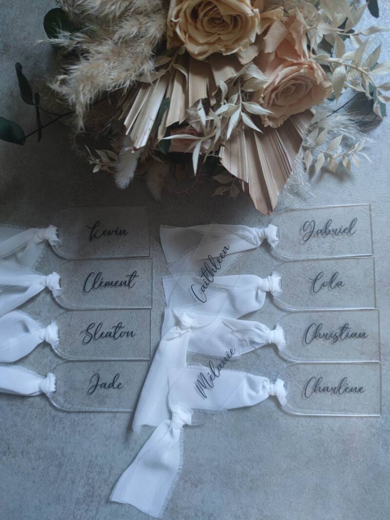 Marque-Place en Plexiglass Personnalisé avec Vinyle et Ruban Mousseline