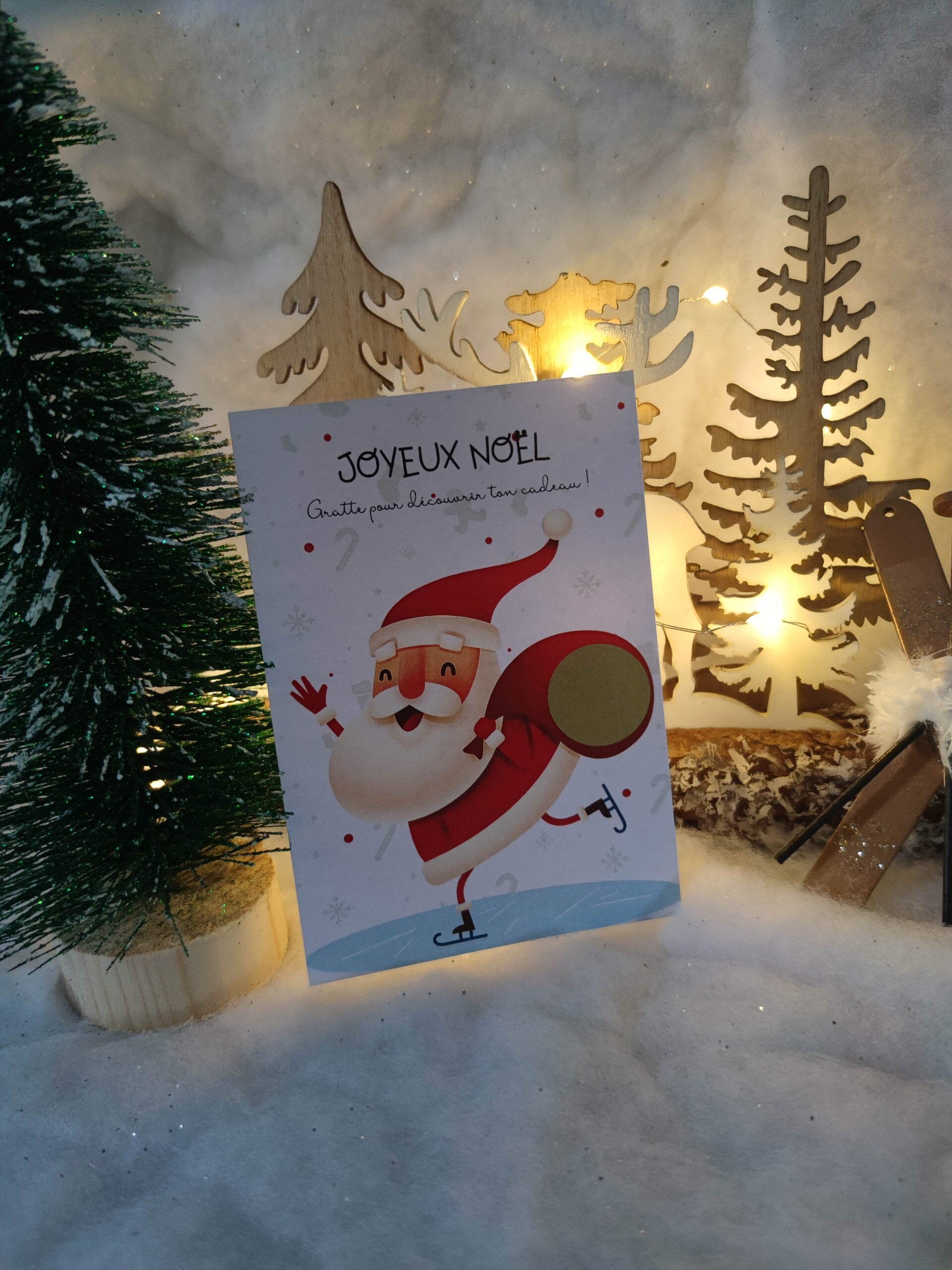 Transformez vos surprises de Noël en moment ludique ! Glissez un petit mot, un cadeau ou un message secret sous cette carte à gratter festive, et laissez la magie opérer quand on gratte pour découvrir la surprise.