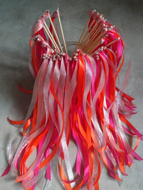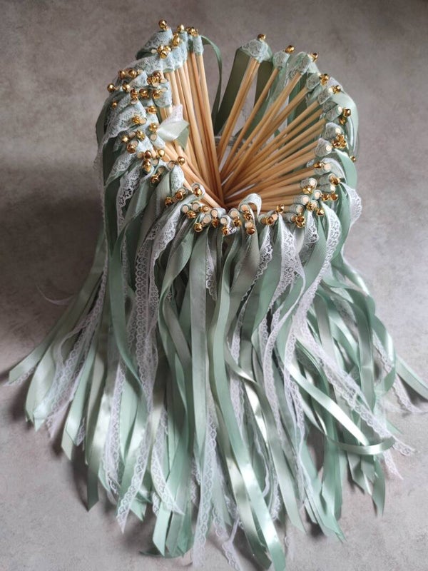 Merci de préciser : - la couleur de chaque ruban (se référer à la liste, voir photos) - la texture de chaque ruban (satin, dentelle 1 ou 2, organza) - la couleur du grelot (doré ou argenté)