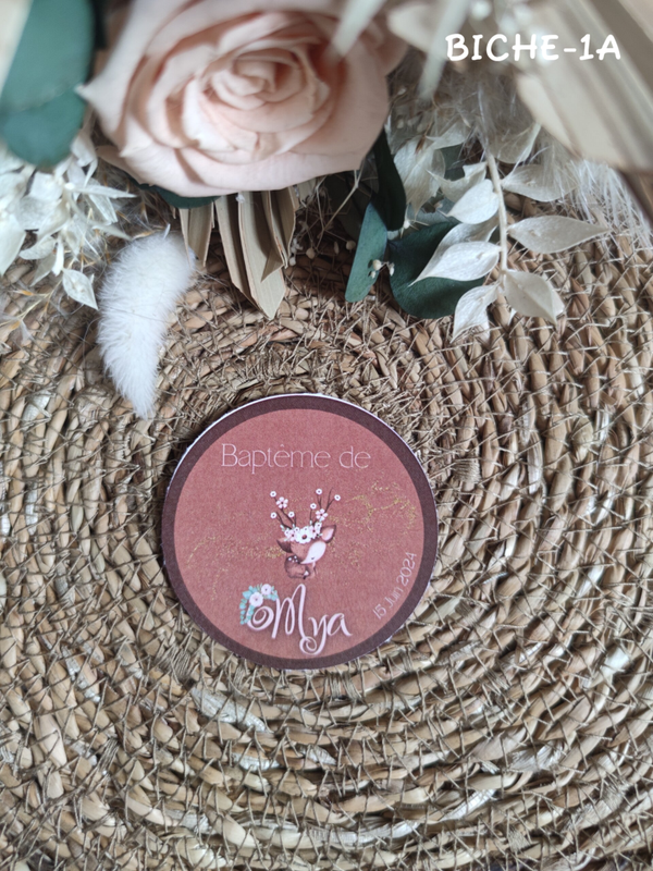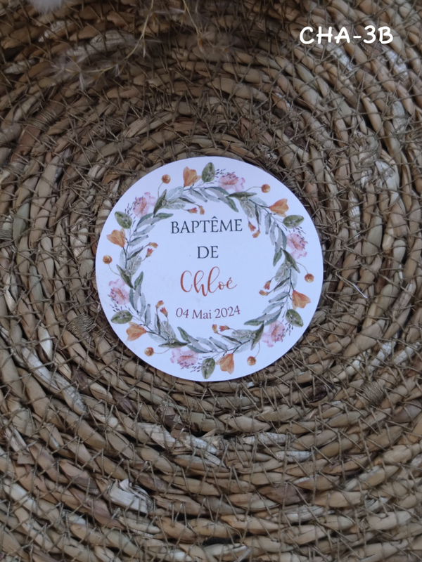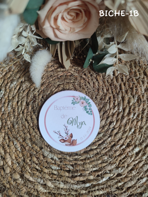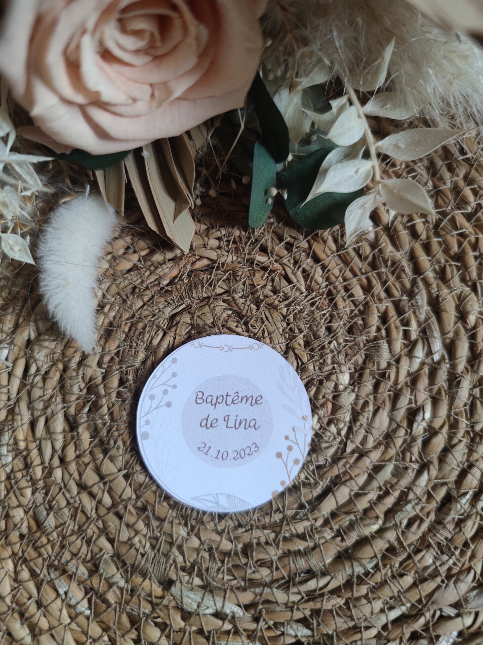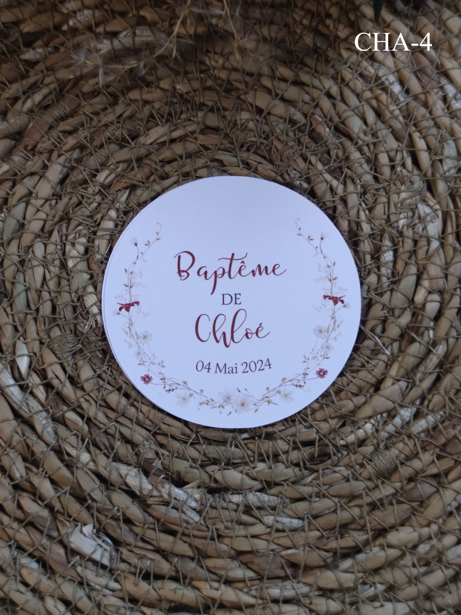 Etiquette cartonnée ronde - tous les thèmes baptême