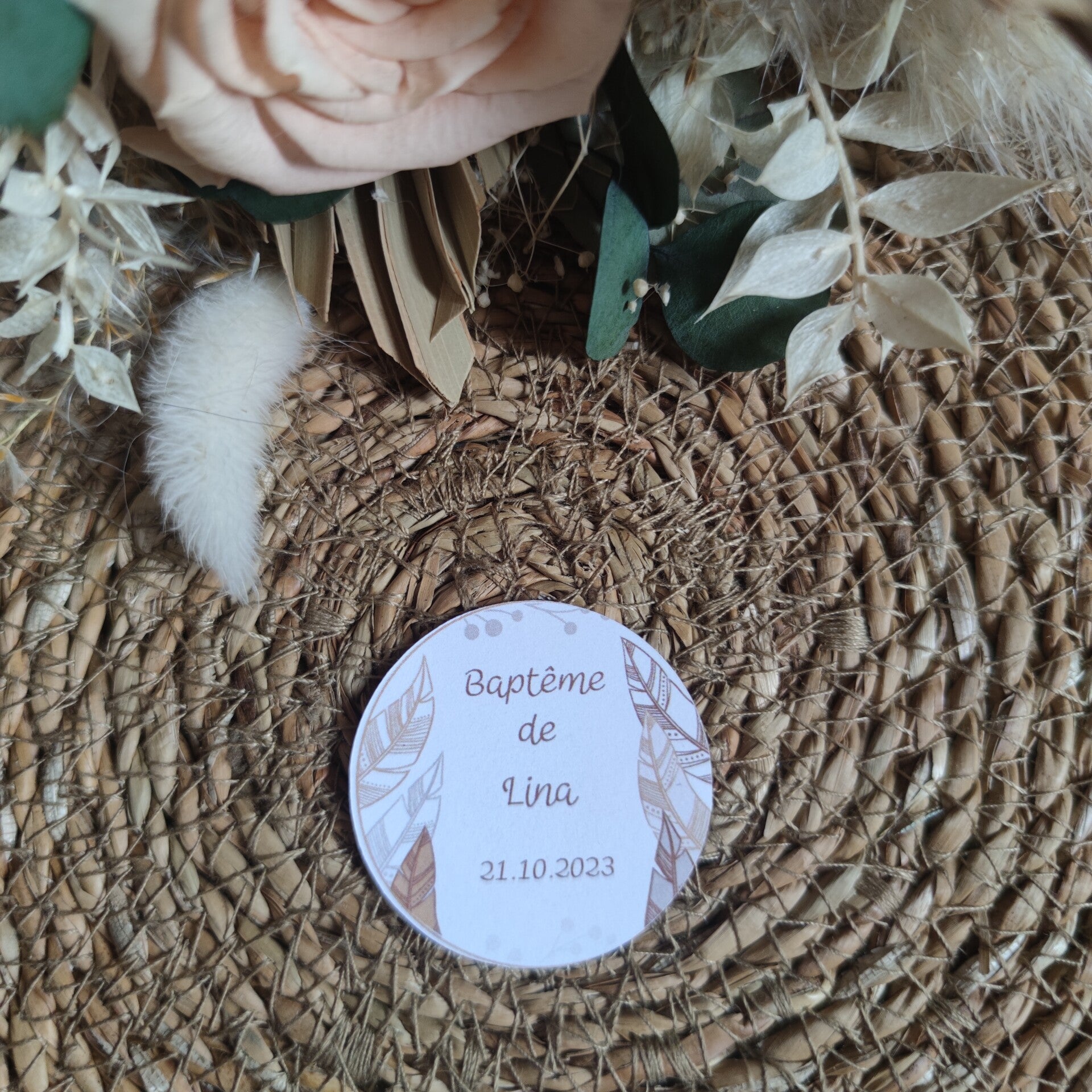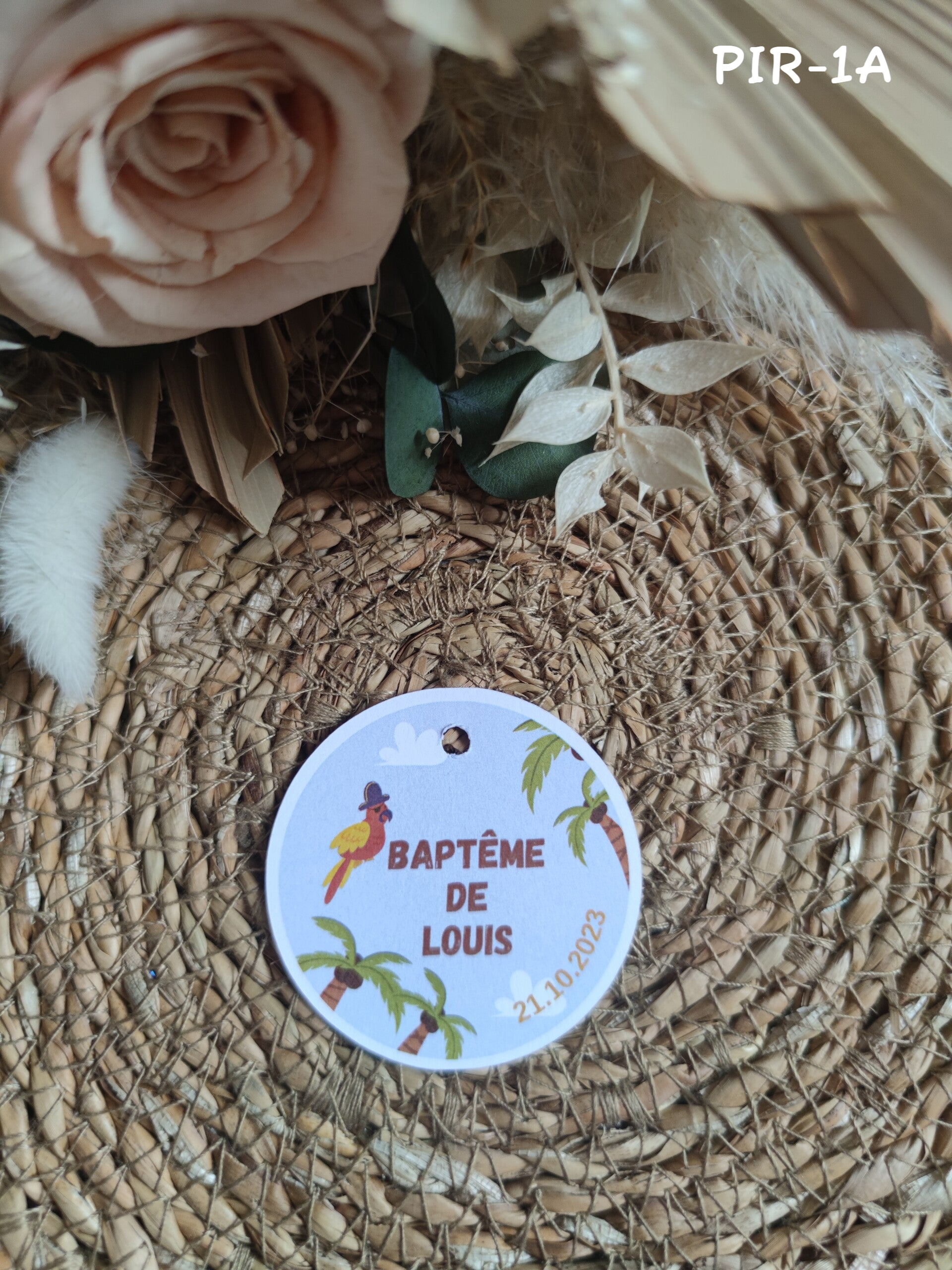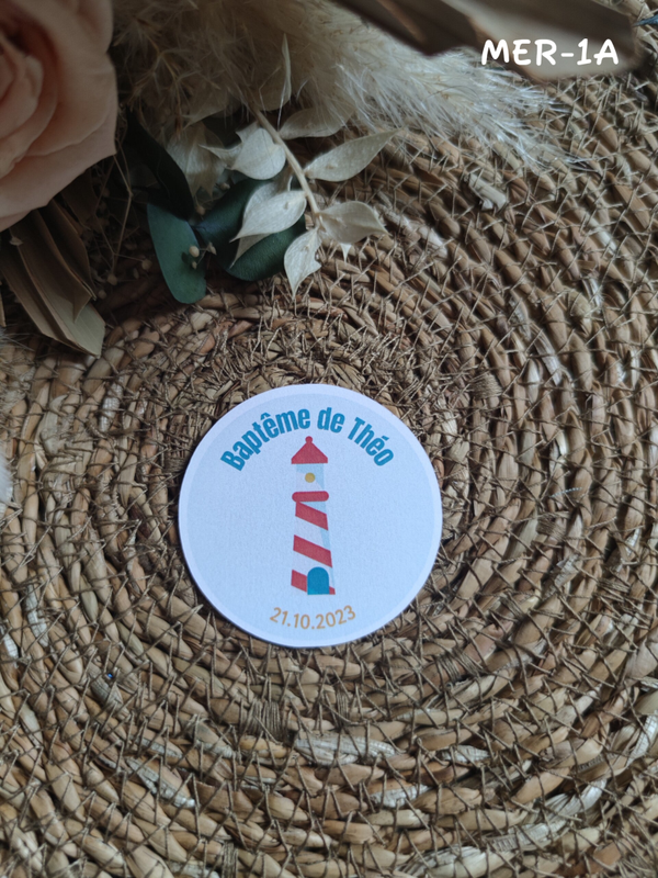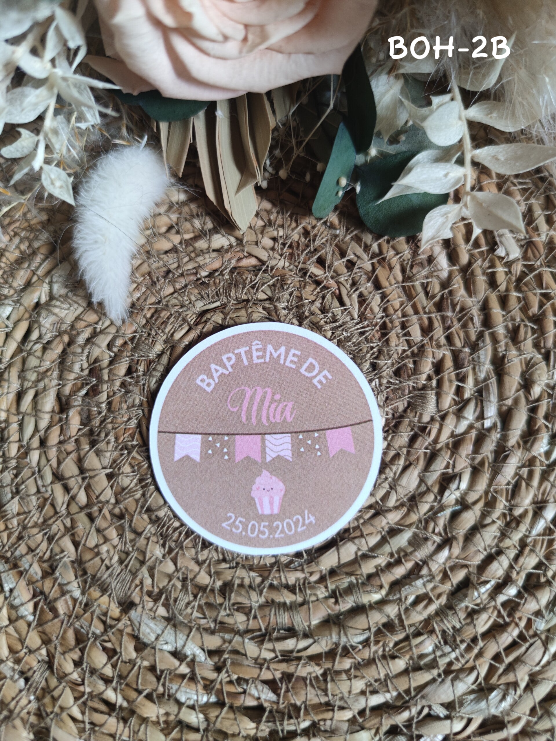 Etiquette cartonnée ronde - tous les thèmes baptême