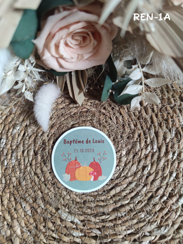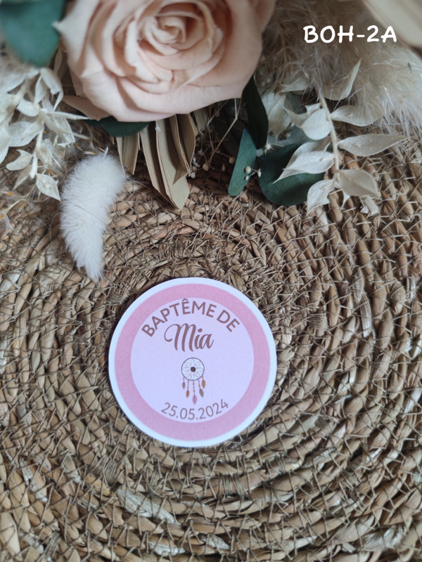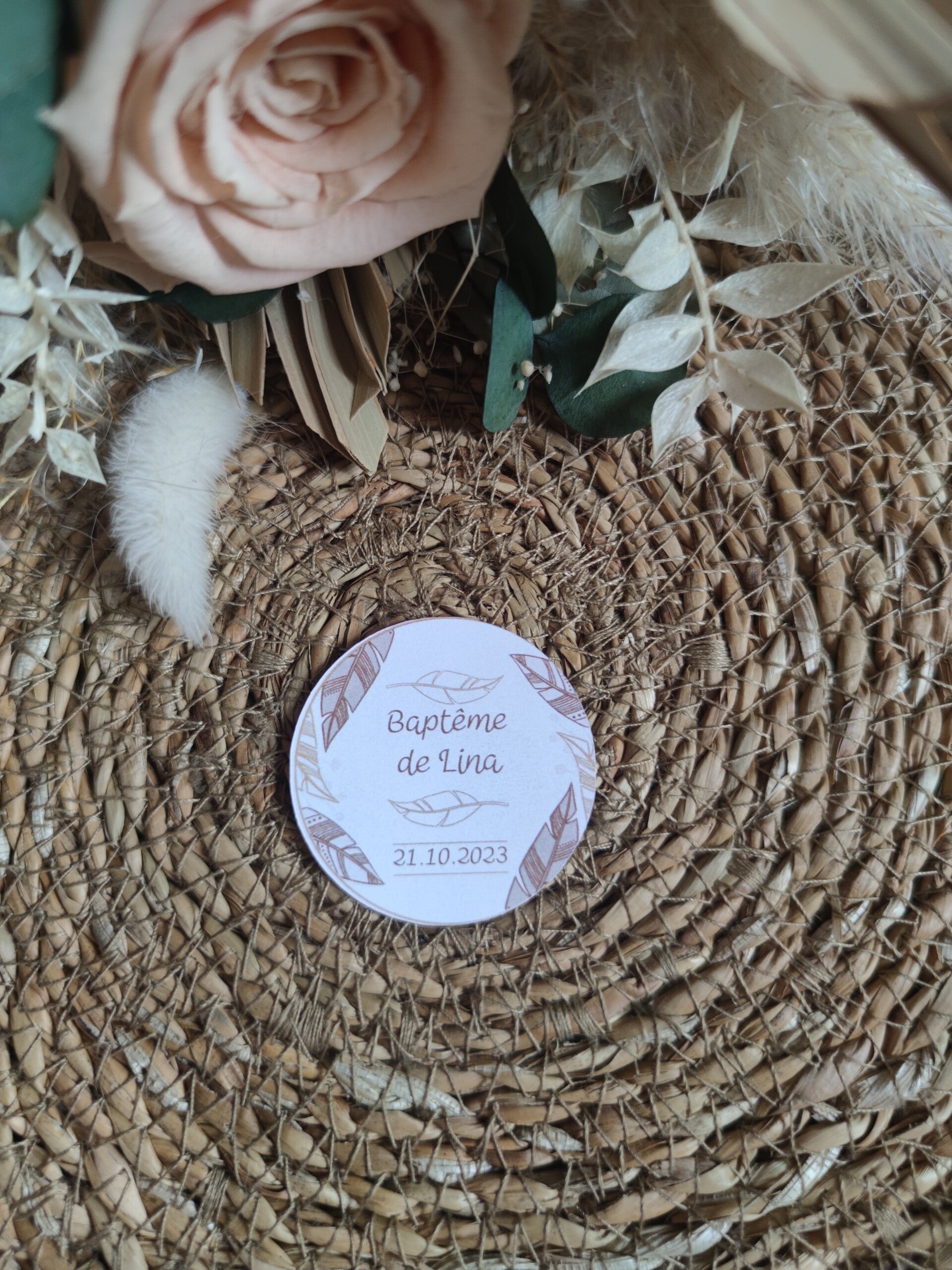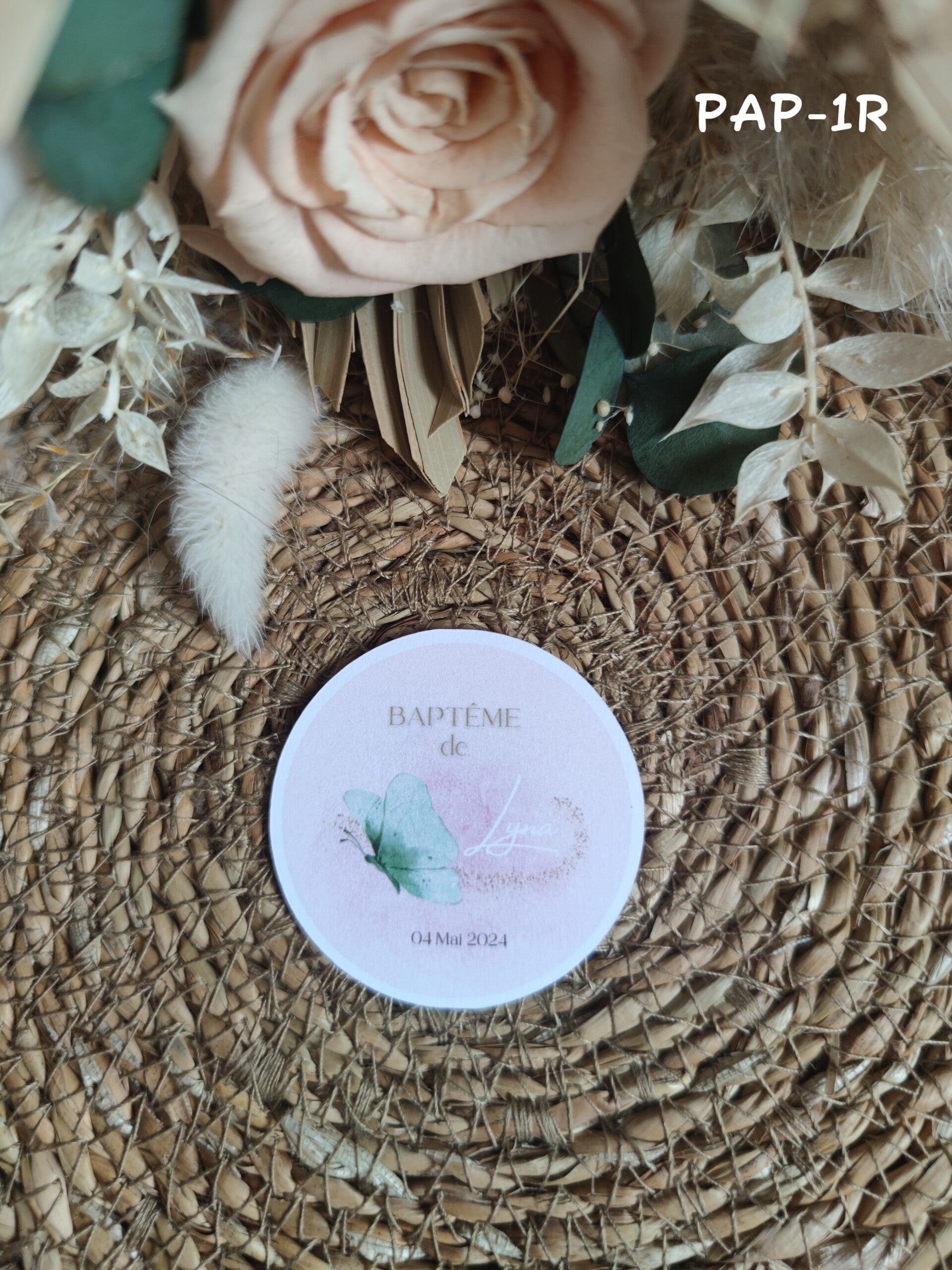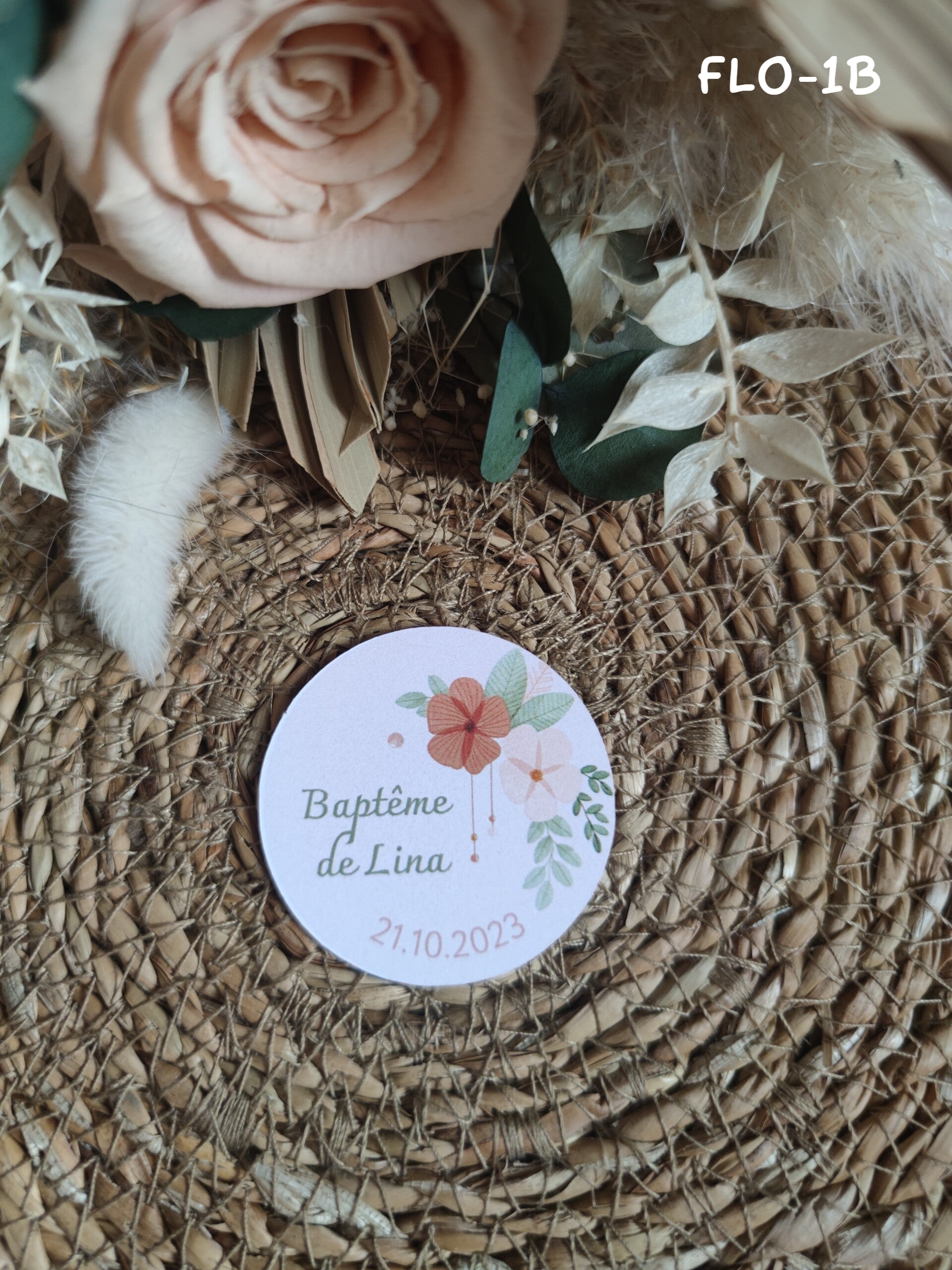 Etiquette cartonnée ronde - tous les thèmes baptême