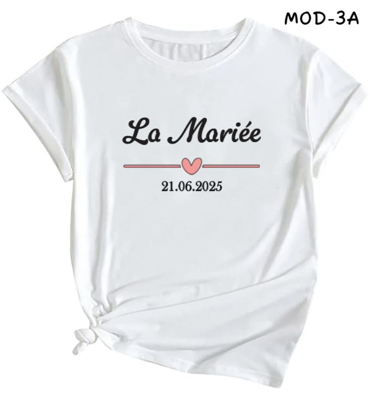 Merci de préciser la référence du modèle souhaité ainsi que le prénom, la date de l'évènement et la couleur du thermocollant (se référer à la liste)