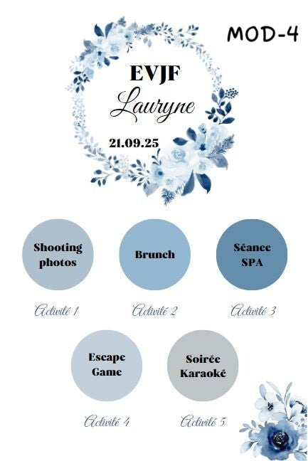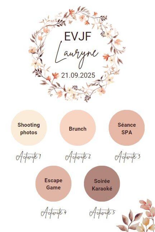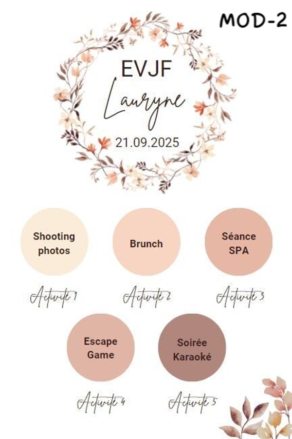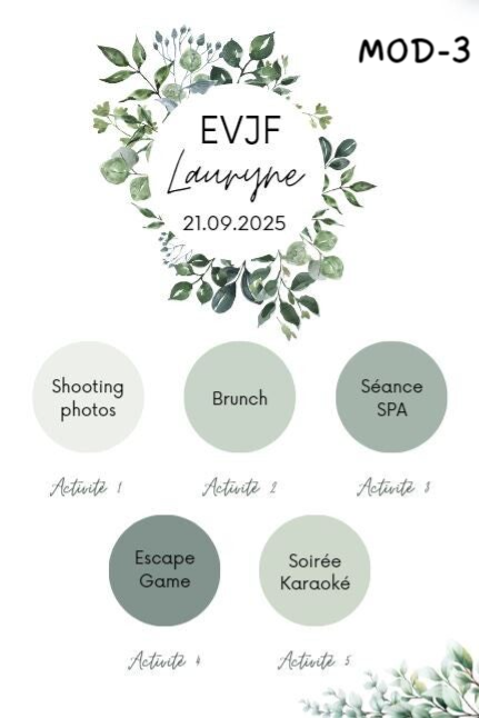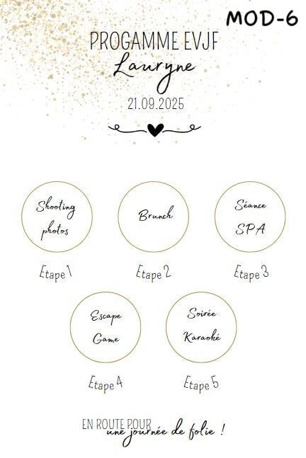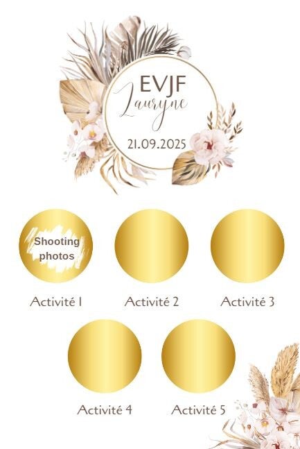 Merci de préciser les étapes / activités dans l'ordre ainsi que tous les éléments nécessaires à la personnalisation (prénom, date etc)