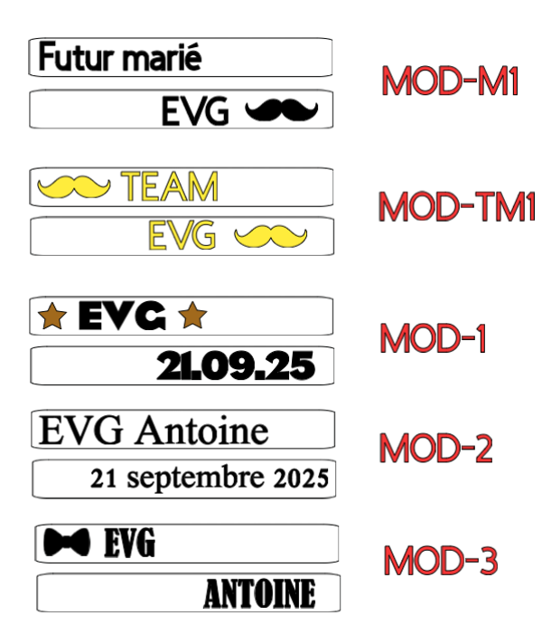 Merci de préciser le modèle ainsi que les informations nécessaires à la personnalisation (prénom, date, ...)