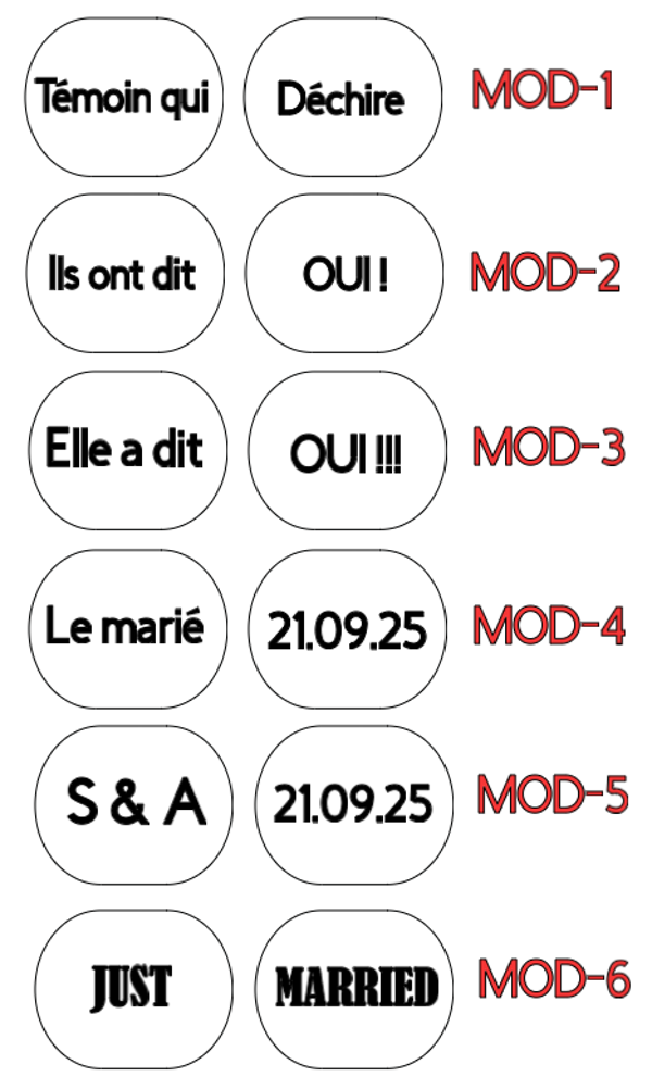 Merci de préciser le modèle ainsi que les informations nécessaires à la personnalisation (prénom, date, ...)