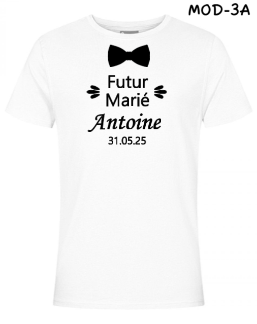 Merci de préciser la référence du modèle souhaité ainsi que le prénom, la date de l'évènement et la couleur du thermocollant (se référer à la liste)