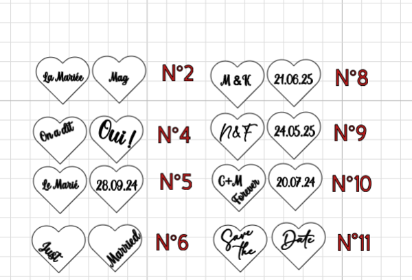 Merci de préciser le modèle ainsi que les informations nécessaires à la personnalisation (prénom, date, ...)