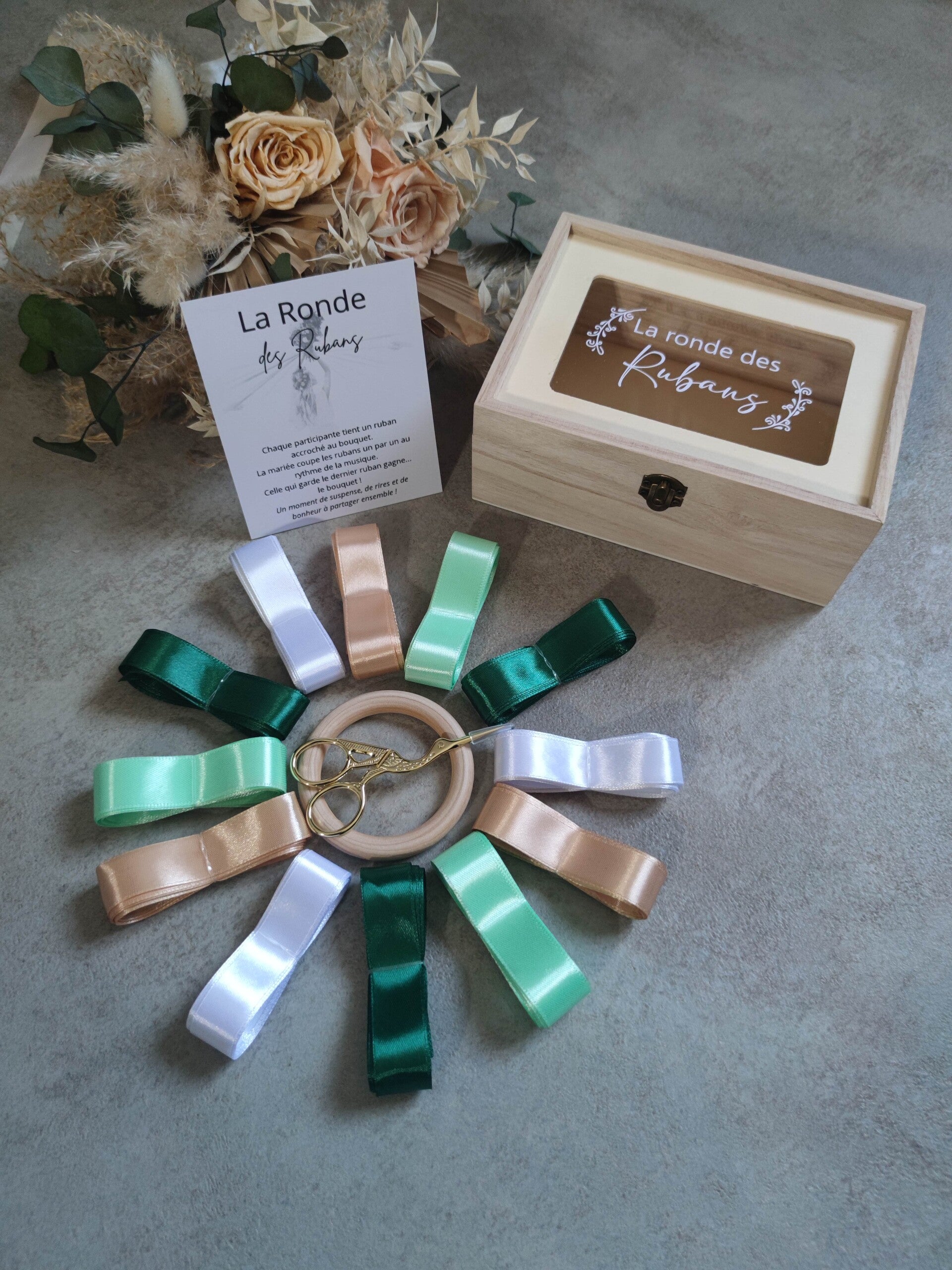 ! La boîte et les ciseaux sont en supplément, à retrouver en vente dans la rubrique Mariage / Rubans !