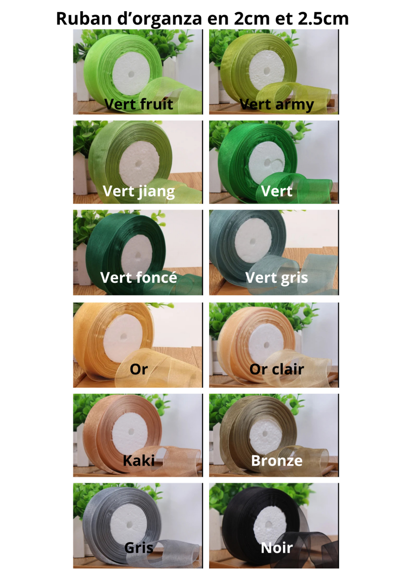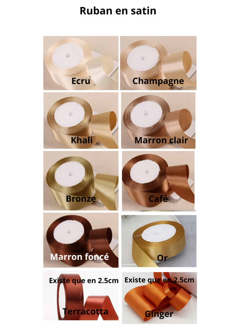 Choix du ruban : satin / organza / dentelle (possibilité de mixer)