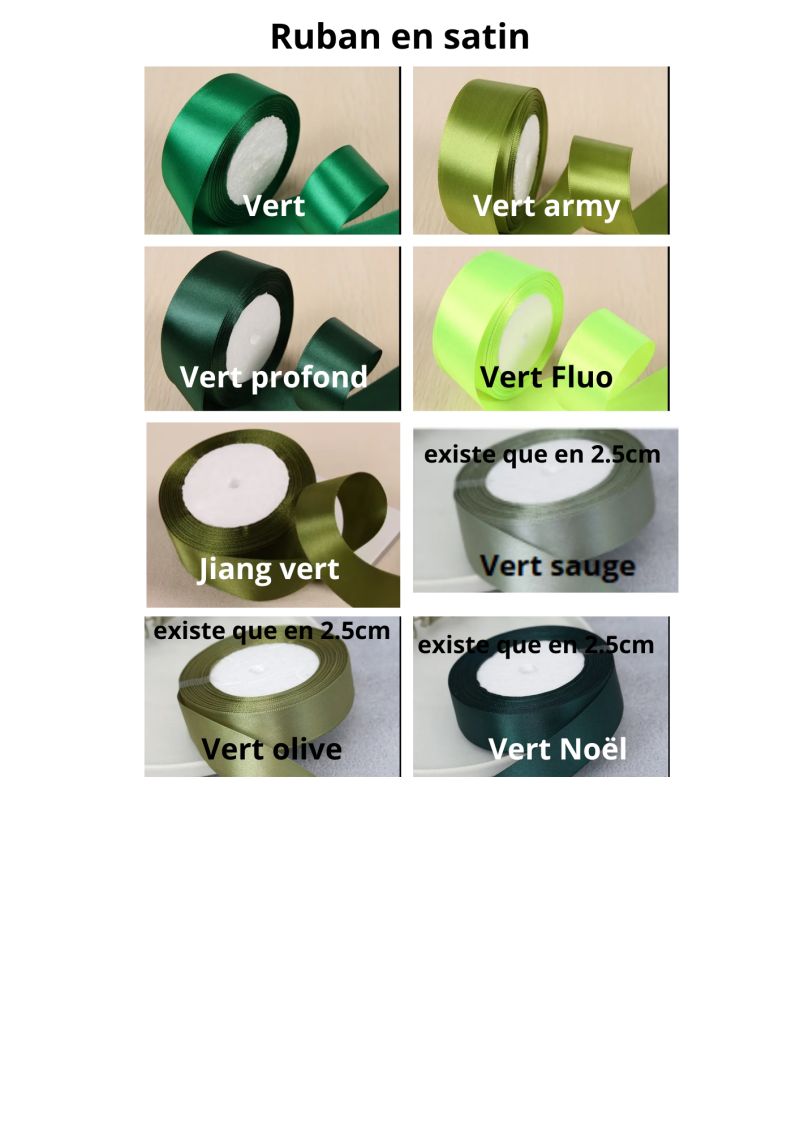 Largeur du ruban : 2cm ou 2.5cm suivant les coloris (se référer aux listes)